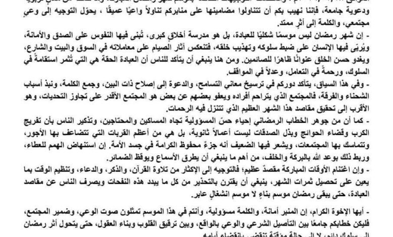 (وكالة_الأنباء_الحضرمية)الجمعة20/فبراير/2026م أصدر مكتب وزارة الأوقاف والإرشاد بحضرموت الوادي والصحراء تعميماً موجهاً إلى الخطباء والأئمة والمرشدين،…