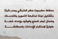 قرار إداري في حضرموت لتشكيل لجنة لمتابعة الوضع التمويني وضمان استقرار الخدمات