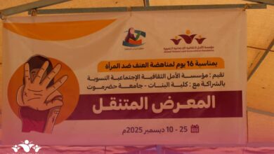 معرض توعوي متنقّل في المكلا لمناهضة العنف ضد المرأة… مؤسسة الأمل وكلية البنات تطلقان مبادرة مجتمعية واسعة