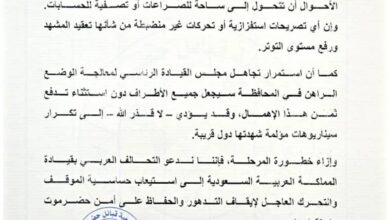 مرجعية قبائل حضرموت تحذر من تفاقم التوتر وتطالب بتحرك عاجل من التحالف العربي