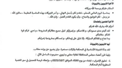 نقابة معلمي وتربويي حضرموت الساحل تعلن تعليق الإضراب ابتداءً من الثلاثاء