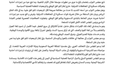 مجلس الشورى يحذّر من المشاريع الأحادية ويؤكّد تمسّكه بمرجعيات استعادة الدولة