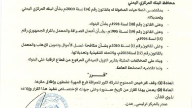 البنك المركزي اليمني يوقف تراخيص شركات ومنشآت صرافة ويغلق مقراتها لمخالفات قانونية