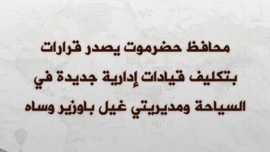قرارات لمحافظ حضرموت بتكليف قيادات إدارية جديدة في السياحة ومديريتي غيل باوزير وساه