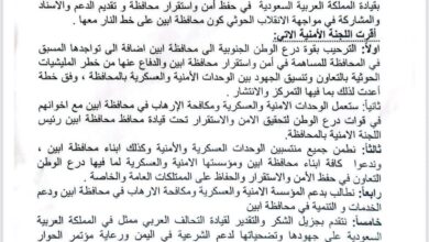 بيان صادر عن قيادة السلطة المحلية بمحافظة أبين والأجهزة الأمنية