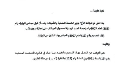 وزارة الخدمة المدنية توقف العمل بتعميم مراجعة مدد الإجازات بدون راتب