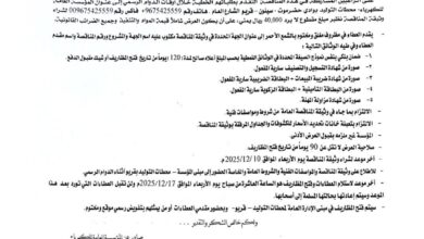 (#وكالة_الأنباء_الحضرمية) الأربعاء 19/نوفمبر/2025م أعلنت المؤسسة العامة للكهرباء الإدارة العامة لمحطات التوليد بوادي حضرموت عن إنزال مناقصة رقم 6/2025 الخاصة بـ…
