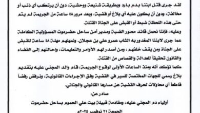 (#وكالة_الأنباء_الحضرمية) السبت 22/نوفمبر/2025م أصدر أولياء دم الشاب عمرو علي بن عجلان العليي ومقادمة قبيلة بيت علي الحموم بساحل حضرموت بيانا…
