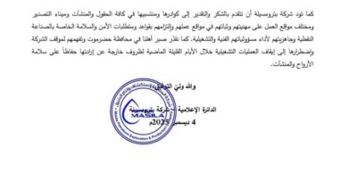 بترومسيلة تعلن استئناف التشغيل التدريجي في القطاعات النفطية عقب تحسن الأوضاع الأمنية