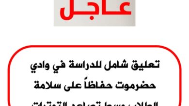 تعليق شامل للدراسة في وادي حضرموت حفاظاً على سلامة الطلاب وسط تصاعد التوترات