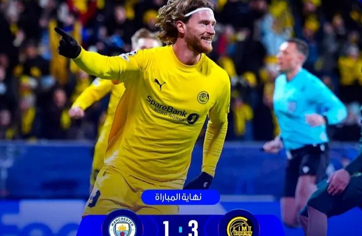 حقق فريق بودو/غليمت فوزاً تاريخياً على مانشستر سيتي بنتيجة 3-1 في الجولة السابعة من دور الدوري لمسابقة دوري أبطال أوروبا، على ملعب أسبميرا.
