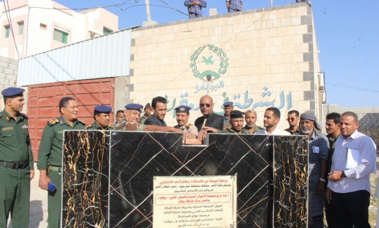 وجرى التدشين برعاية كريمة من عضو مجلس القيادة الرئاسي، محافظ محافظة حضرموت، الدكتور سالم أحمد الخنبشي، وبإشراف وكيل محافظة حضرموت الأستاذ حسن سالم الجيلاني، ضمن خطة السلطة المحلية الهادفة إلى تأهيل وتوسعة المرافق الأمنية والخدمية بالمديرية.