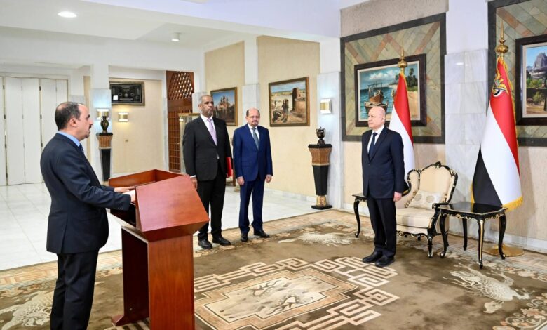 رئيس وأعضاء الحكومة يؤدون اليمين الدستورية أمام رئيس مجلس القيادة الرئاسي في الرياض