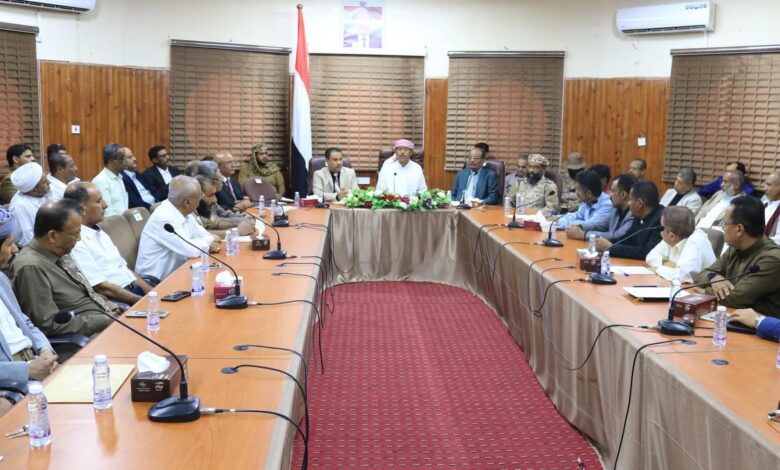 وترأس الاجتماع وكيل المحافظة لشؤون مديريات الوادي والصحراء الأستاذ جمعان سالمين بارباع، بحضور الوكلاء المساعدين، وقائد المنطقة العسكرية الأولى، إلى جانب قيادات المكاتب التنفيذية ذات العلاقة.