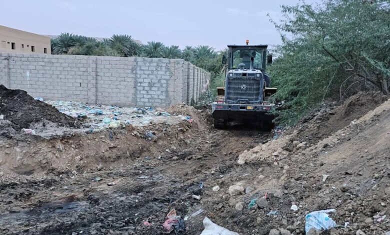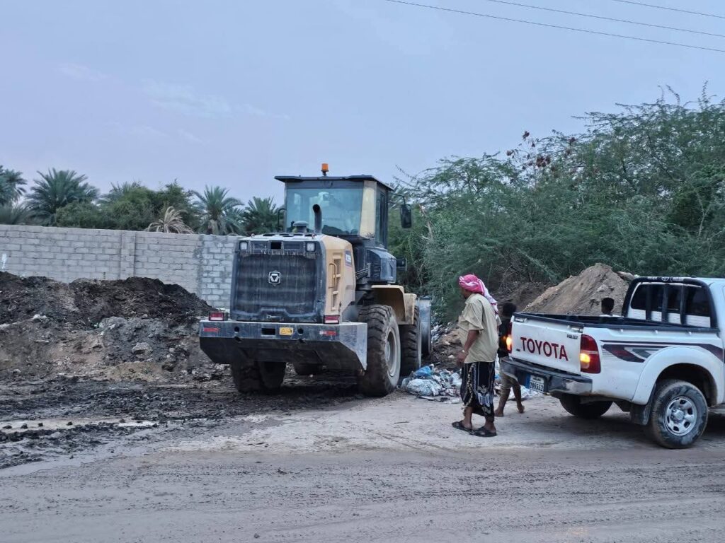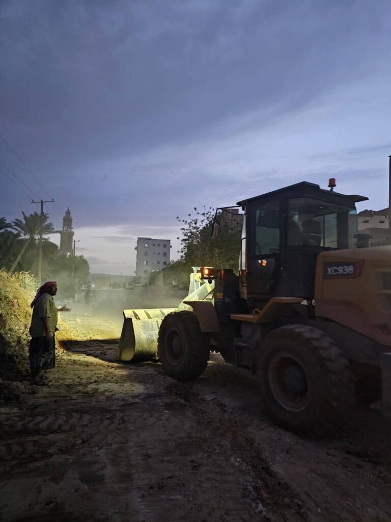 وحدة النظافة وتحسين مديرية سيئون تنفذ حملة لإزالة مخلفات السيول والأمطار بخط شحوح