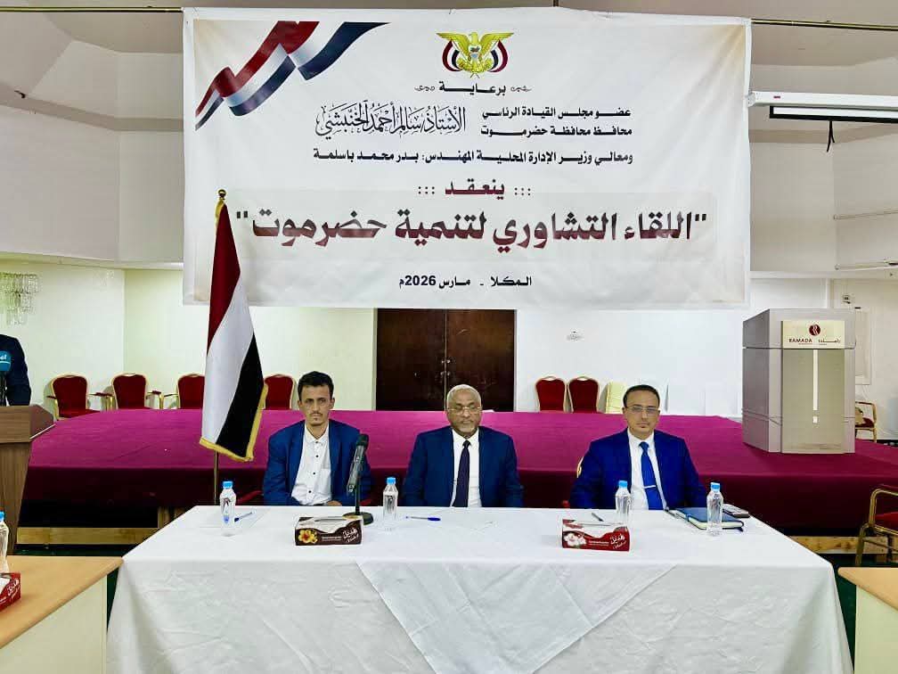 ترأس وزير الإدارة المحلية بدر باسلمة، اليوم، بمدينة المكلا، اللقاء التشاوري لتنمية محافظة حضرموت، الذي نظمته السلطة المحلية برعاية عضو مجلس القيادة الرئاسي محافظ حضرموت سالم أحمد الخنبشي، وبمشاركة مسؤولين وشخصيات سياسية واقتصادية واجتماعية.