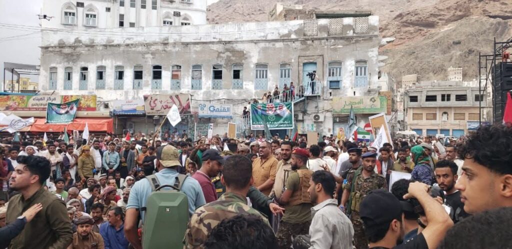 وتوافد الآلاف من المواطنين من مختلف شرائح المجتمع استجابةً لدعوات قبلية ومجتمعية، حيث اكتظت ساحة سكة يعقوب بمدينة المكلا، والساحة المقابلة لقصر السلطان الكثيري في سيئون، بالحشود التي رفعت الأعلام الوطنية وأعلام المملكة، إلى جانب صور قيادتها، في مشهد عكس عمق الروابط الأخوية وصلابة الموقف الشعبي.