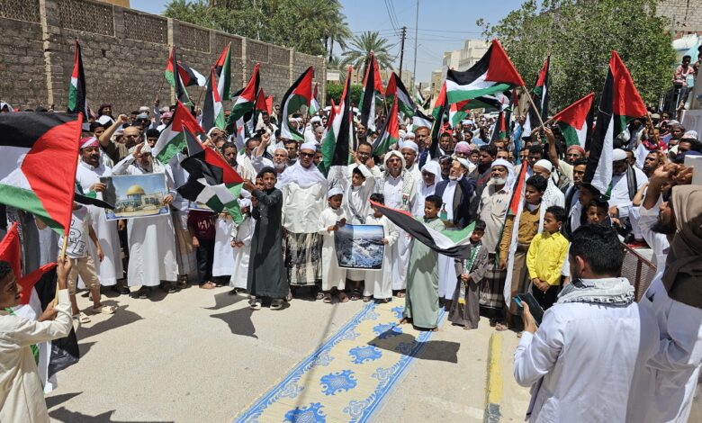 وقفة تضامنية في سيئون تنديداً بإغلاق المسجد الأقصى وقرارات إعدام الأسرى