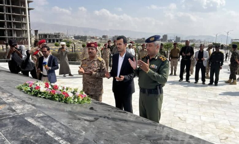 الجيلاني وقيادات عسكرية وأمنية يضعون إكليلًا على ضريح الجندي المجهول بالمكلا