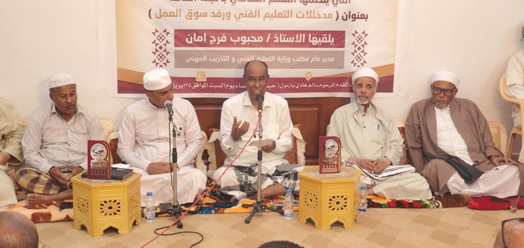 احتضنت مدينة سيئون ندوة ثقافية بعنوان “مدخلات التعليم الفني ورفد سوق العمل”، نظمتها الديوانية الثقافية الفصلية (ديوانية الحوطة المستطيلة) ضمن أنشطة لجنة الحافة، بمشاركة نخبة من الأكاديميين والمهتمين وطلاب المعهد المهني الصناعي.
