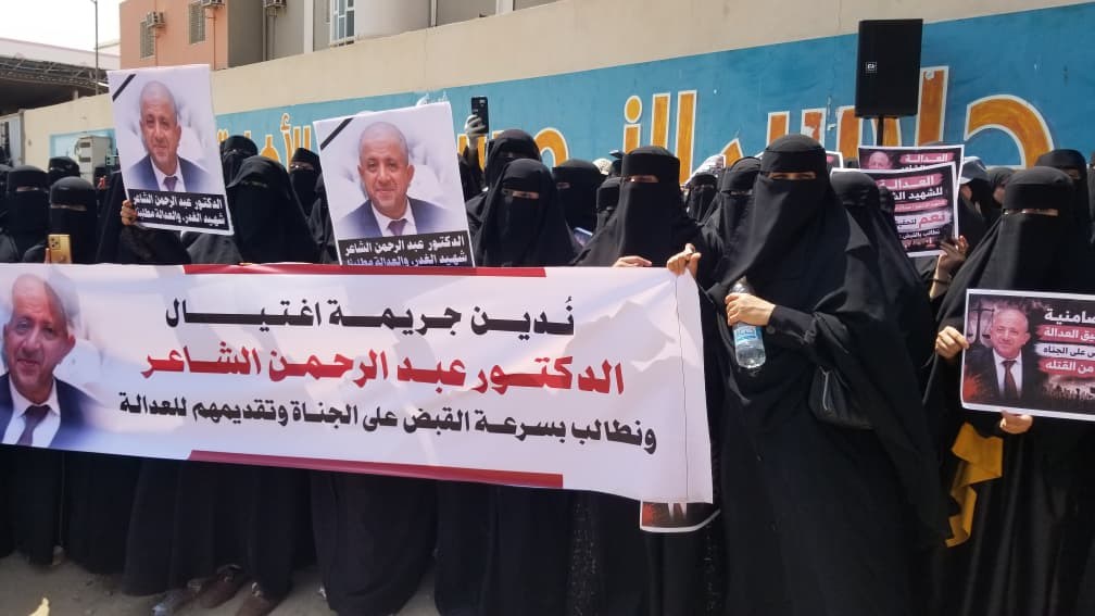 وطالب المحتجون مجلس القيادة الرئاسي اليمني بتحمل مسؤولياته في حماية الأرواح، والعمل على كشف ملابسات الجريمة بسرعة، وضبط الجناة وتقديمهم للعدالة، بما يعزز هيبة الدولة وسيادة القانون.