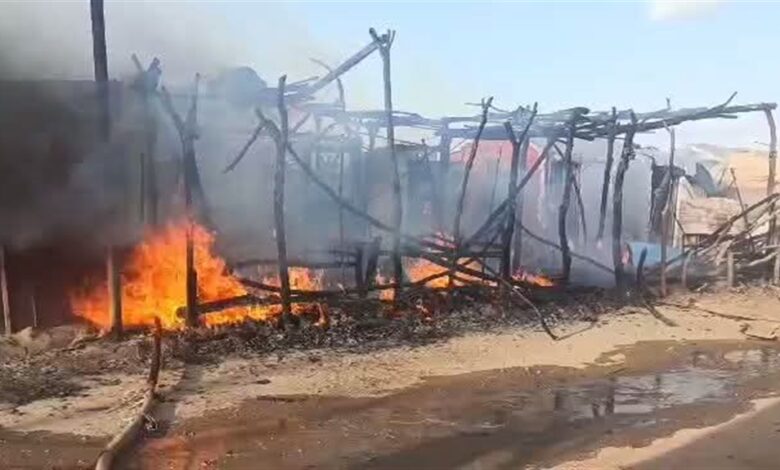 حريق يلتهم مساكن خمس أسر نازحة في أبين دون خسائر بشرية