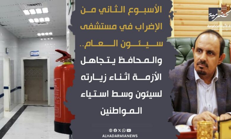 الأسبوع الثاني من الإضراب في مستشفى سيئون العام.. والمحافظ يتجاهل الأزمة اثناء زيارته لسيئون وسط استياء المواطنين