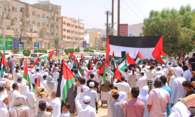 وشدد المشاركون على أن تضامنهم مع غزة وفلسطين يأتي امتدادًا لموقف حضرموت والشعب اليمني الثابت والداعم لحقوق الشعب الفلسطيني المشروعة في الحرية والاستقلال، مؤكدين أن فلسطين ستبقى القضية المركزية الأولى للأمة العربية والإسلامية.