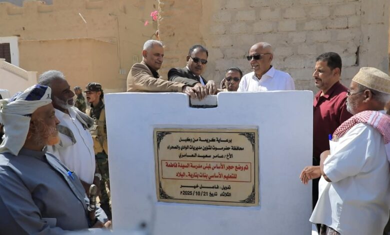 وضعت السلطة المحلية بوادي وصحراء حضرموت صباح اليوم حجر الأساس لمشروع بناء مدرسة فاطمة للتعليم الأساسي للبنات بمنطقة تاربة في مديرية سيئون، ضمن جهودها الهادفة إلى تحسين البنية التحتية التعليمية وتوسيع فرص التعليم للفتيات في مناطق الوادي والصحراء.