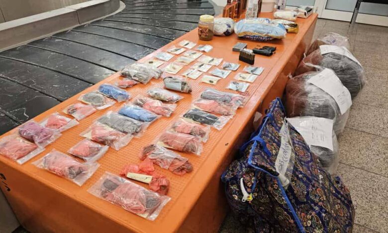 ووفق تقرير رسمي صادر عن إدارة أمن المطار، فقد تم إيقاف 13 شخصاً من الممنوعين من السفر والمتورطين في قضايا جنائية مختلفة، إضافة إلى إحباط تهريب أكثر من 21 كيلوجراماً من مادة القات، وضبط 9 علب من مادة “التنباك” المحظورة والممزوجة بمواد مخدّرة، إلى جانب 18 طلقة نارية ومسدس تم العثور عليهما أثناء التفتيش الأمني.