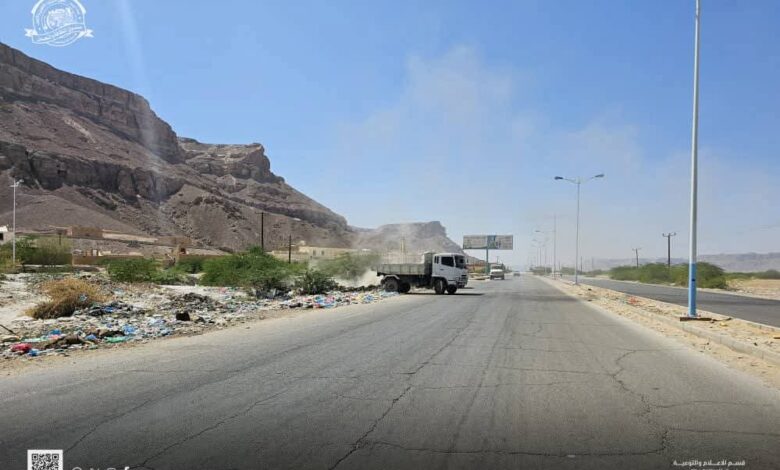 وشملت الحملة رفع القمائم والمخلفات المتراكمة على طول الخط باستخدام معدات الصندوق (الشيول)، ابتداءً من خط سوم بن همام وحتى جولة تاربة، في خطوة تهدف إلى تحسين المظهر العام وضمان انسيابية الحركة على الطريق الدولي الحيوي.