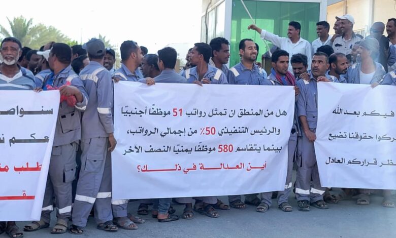 وأوضح بيان صادر عن العمال أن الإدارة لم تتفاعل مع مطالبهم رغم الوعود السابقة، مشيرين إلى وجود “اختلالات واضحة في سلم الرواتب” بين الموظفين المحليين والأجانب، حيث يحصل العامل الأجنبي على رواتب مضاعفة مقارنة بنظرائه اليمنيين في نفس المهام والمستويات.