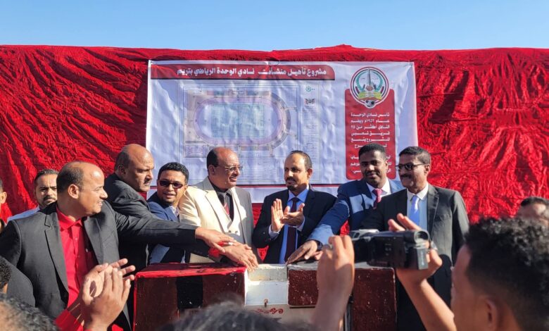 محافظ حضرموت يضع حجر الأساس لمشروع المرحلة الأولى من منشآت نادي الوحدة بتريم