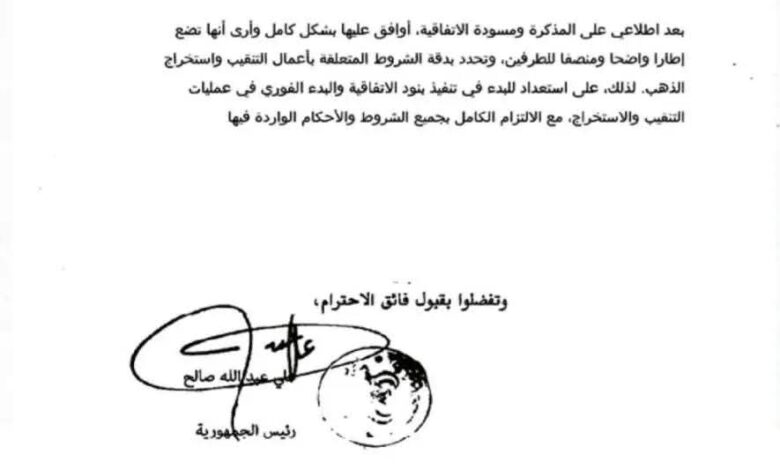 تداولت وسائل إعلام محلية وصفحات مهتمة بالشأن اليمني وثائق قالت إنها مسرّبة، تكشف تفاصيل ما وُصف بأنه من أكبر عمليات التصرف غير المعلن في الذهب اليمني خلال السنوات الماضية، عبر اتفاقيات سرية يُزعم أنها عُقدت بين دولة الإمارات والرئيس اليمني الأسبق علي عبدالله صالح.