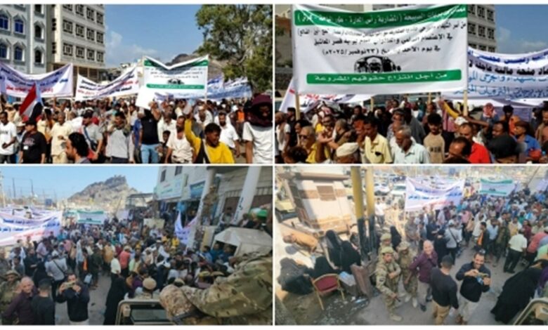 جرحى المحافظات الجنوبية يعلنون اعتصاماً مفتوحاً أمام قصر معاشيق للمطالبة بتسوية مستحقاتهم واستكمال العلاج