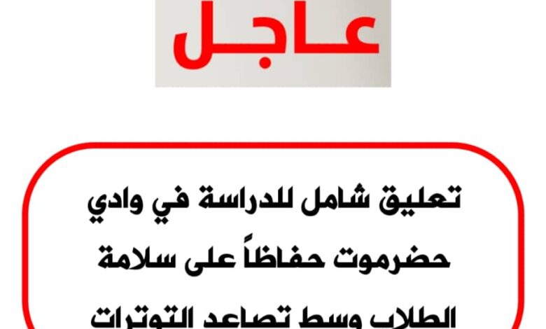 تعليق شامل للدراسة في وادي حضرموت حفاظاً على سلامة الطلاب وسط تصاعد التوترات