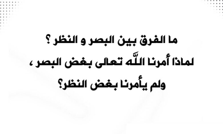 ما الفرق بين البصر و النظر ؟لماذا أمرنا الله تعالى بغض البصر ، ولم يأمرنا بغض النظر؟