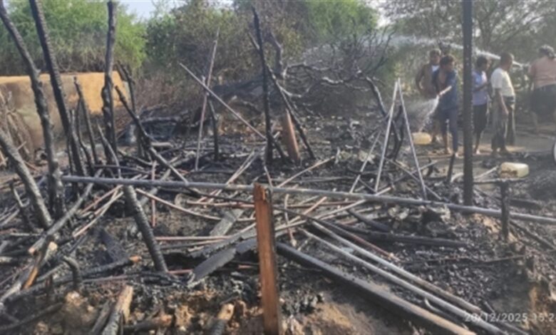 حريق يدمّر مساكن نازحين في مديرية حيران بمحافظة حجة
